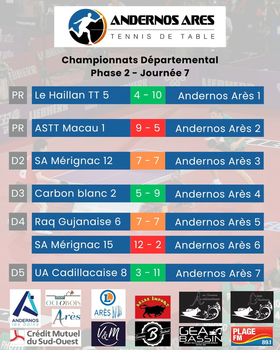 🏓 Ce weekend c'était la dernière journée de championnat départemental.📝 Résultats : 3 victoires, 2 nuls et 2 défaites