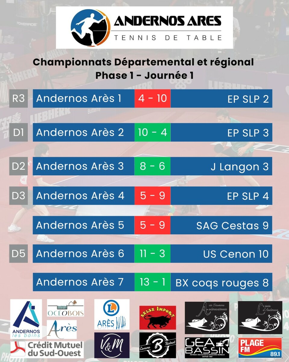 🏓 Ce weekend c'était la reprise des championnats départemental et régional. Le bilan est positif avec 4 victoires et 3 défaites et nous noterons les beaux débuts de nos jeunes en D5 !