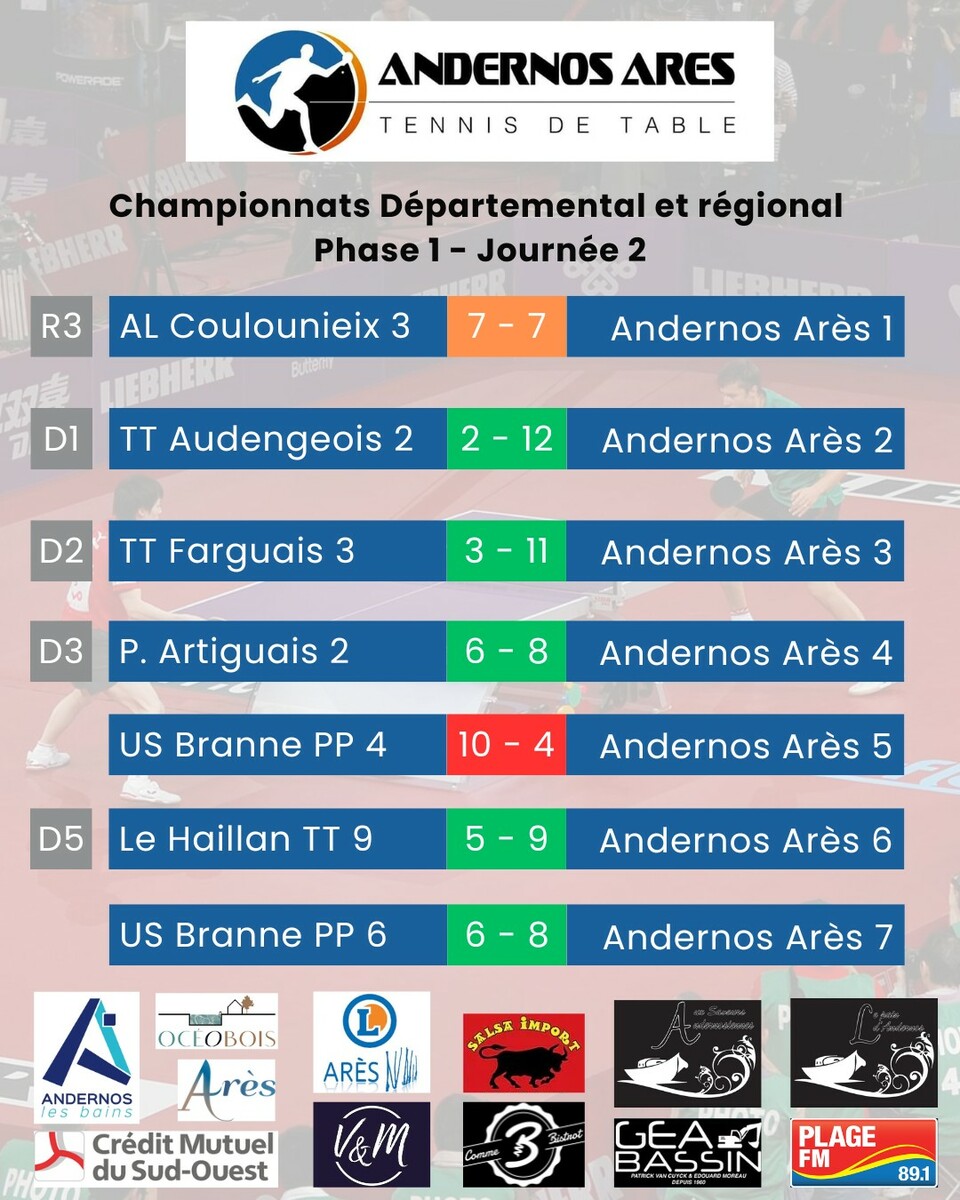 🏓 Matchs à l'extérieur ce weekend et le bilan est très bon avec 5 victoires, 1 nul et 1 défaite. Notons aussi de belles perfs individuelles : Gilles (6) sur 7 et 8, Florian (9) sur 10, Guillaume (11) sur 12, Manu (13) sur 14 👏🏻